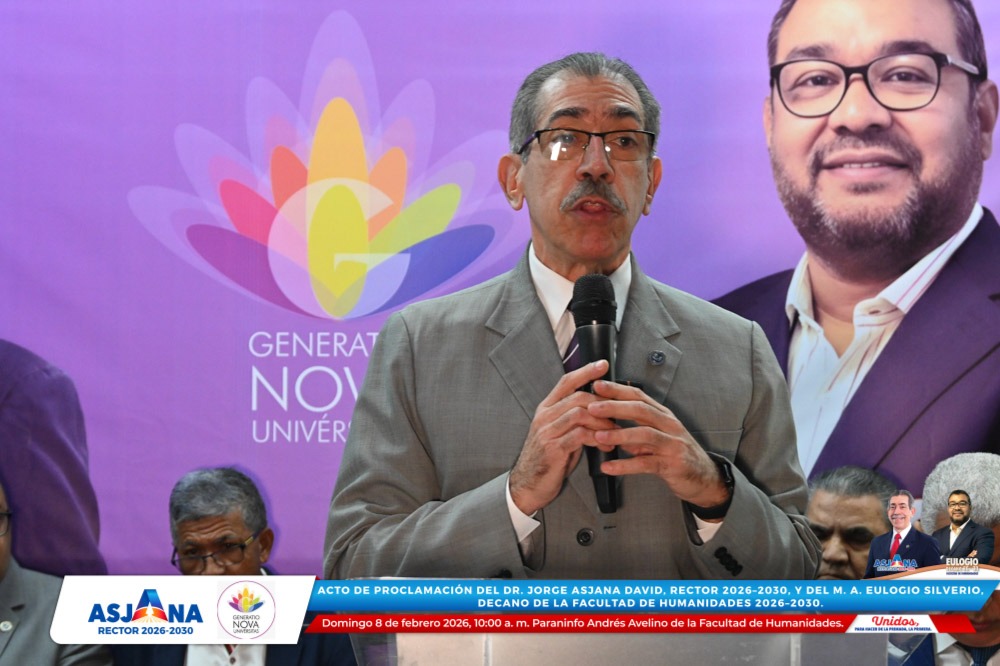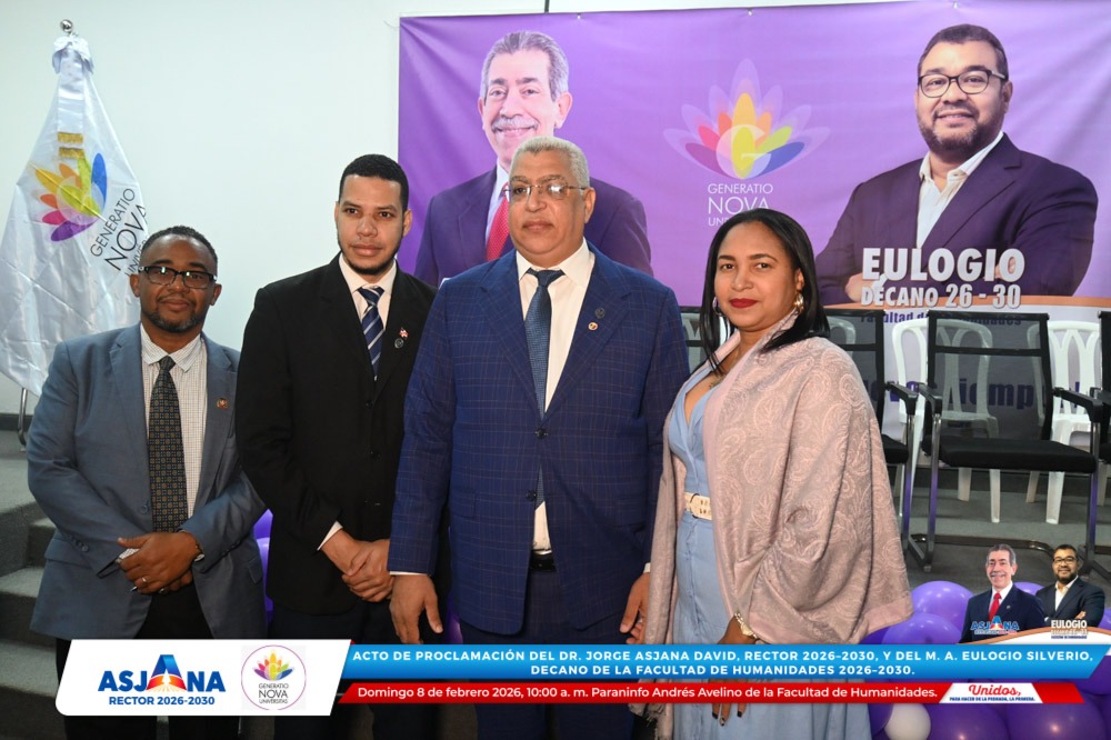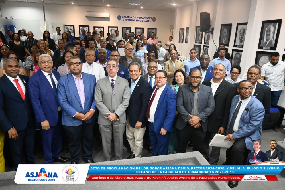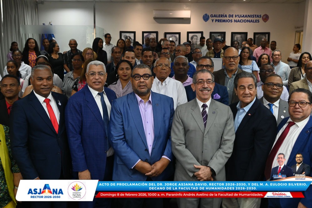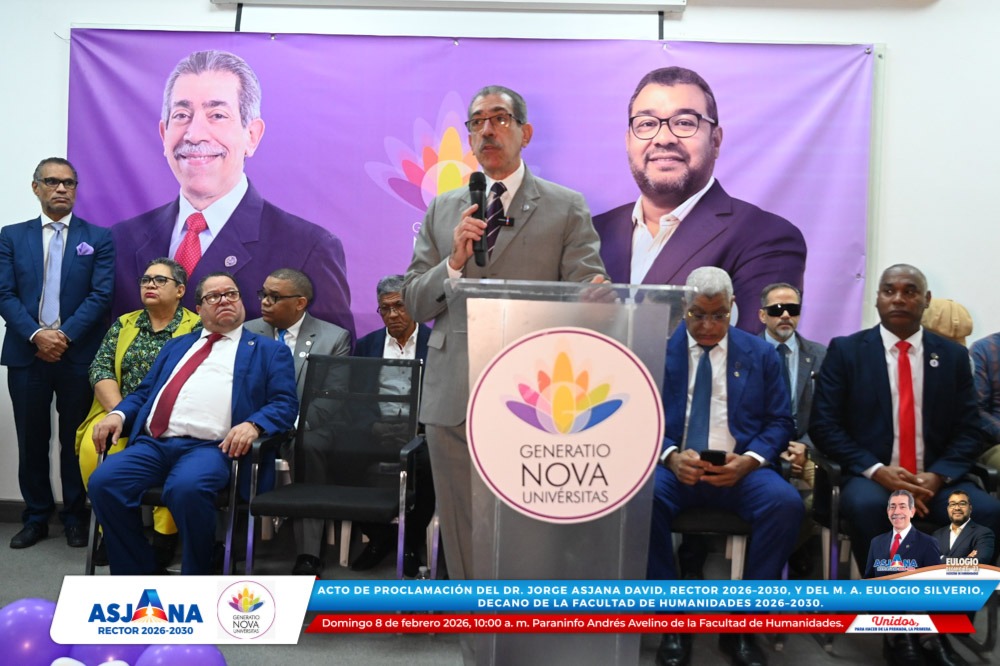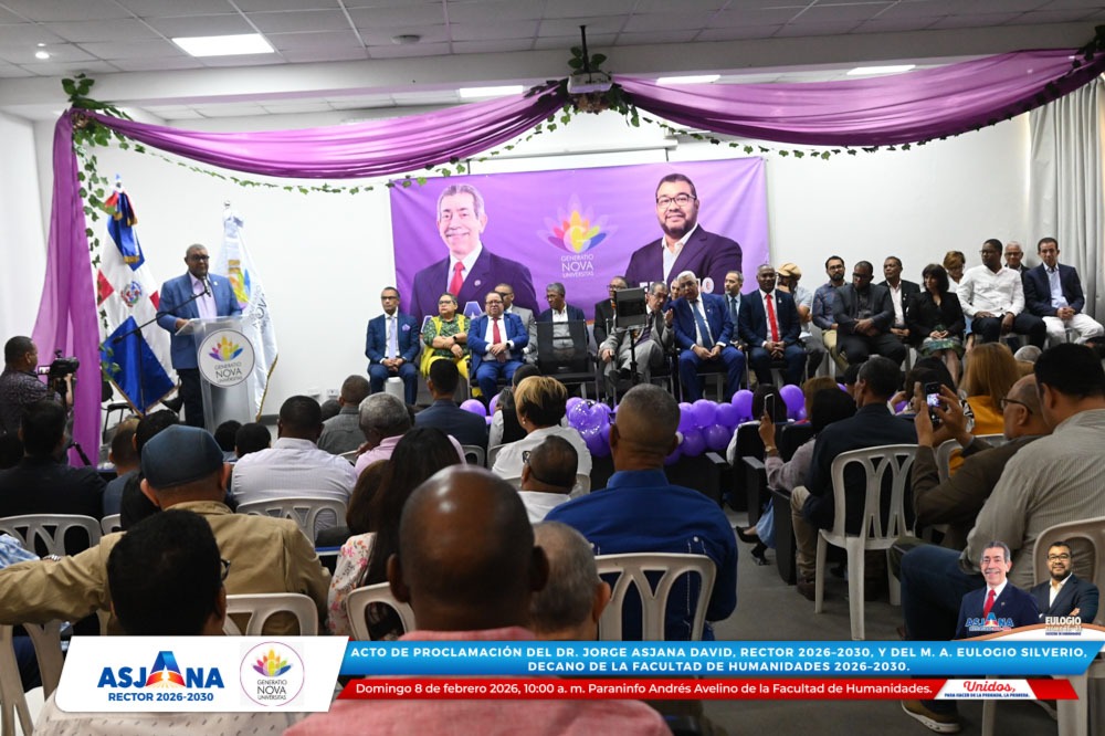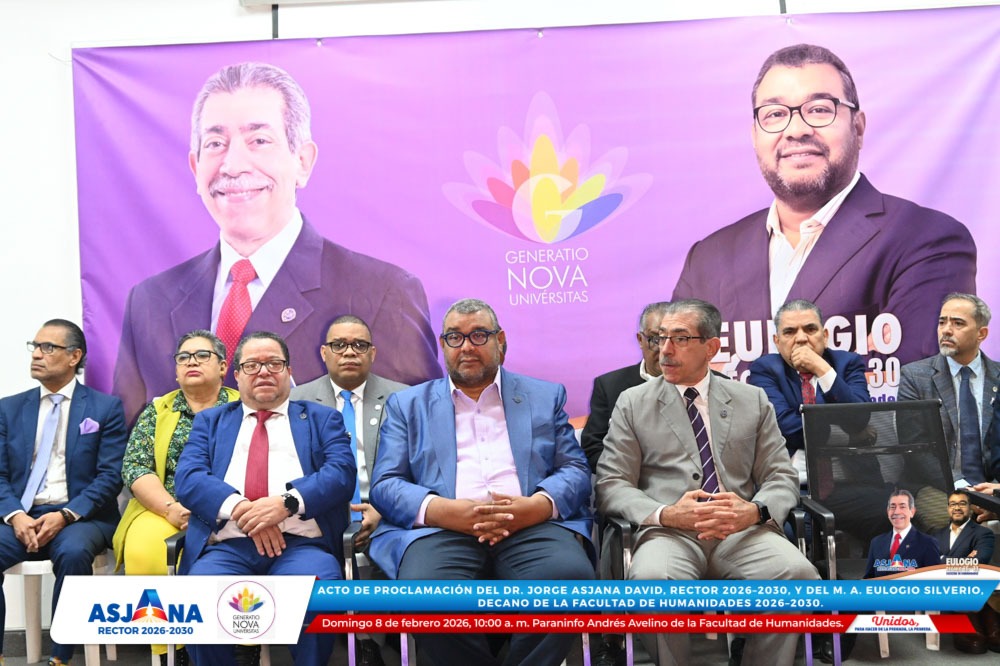 El movimiento académico Generatio Nova Univérsitas realizó el acto de proclamación del Dr. Jorge Asjana David como Rector de la Universidad Autónoma de Santo Domingo (UASD) para el período 2026–2030, así como del M. A. Eulogio Silverio como Decano de la Facultad de Humanidades para el mismo período.