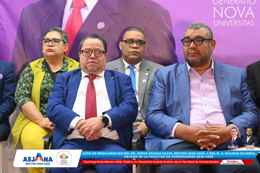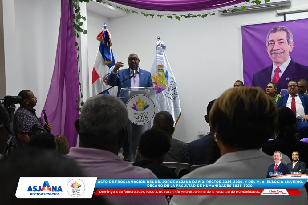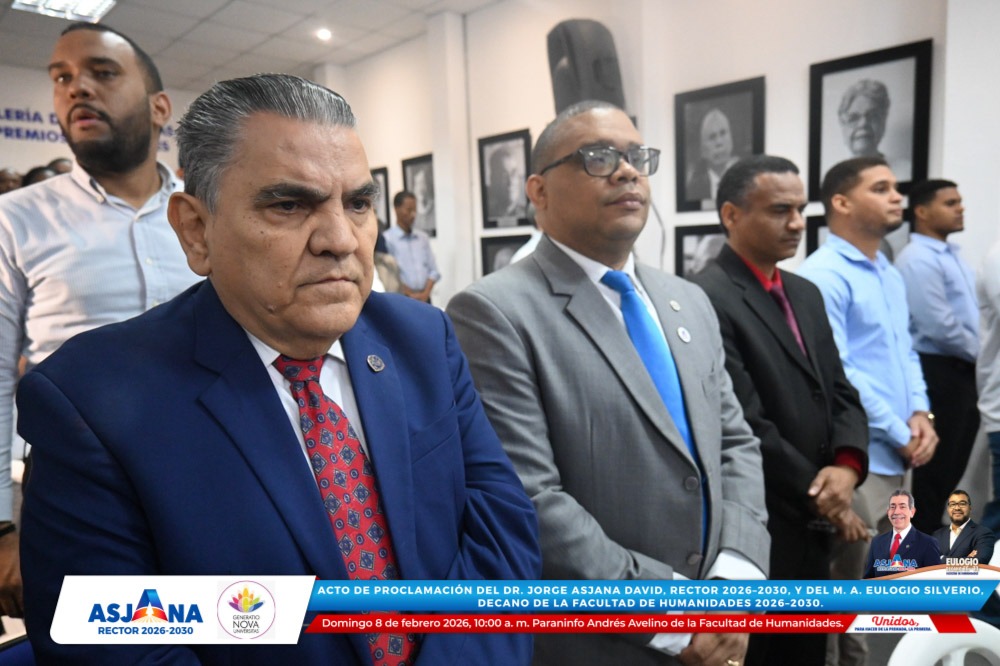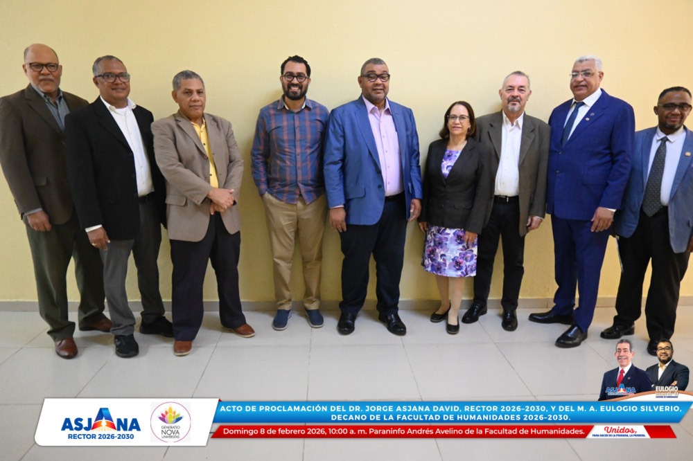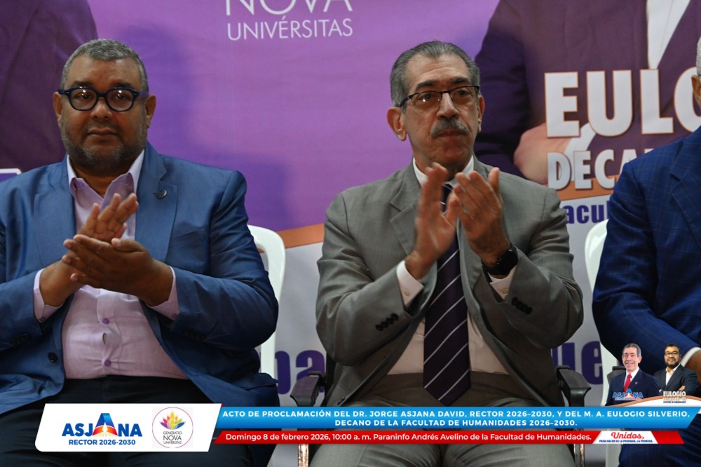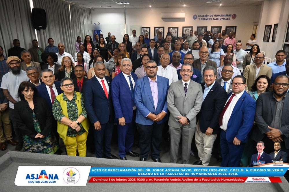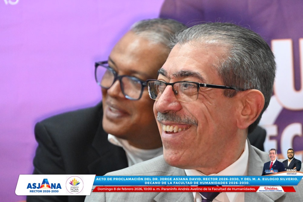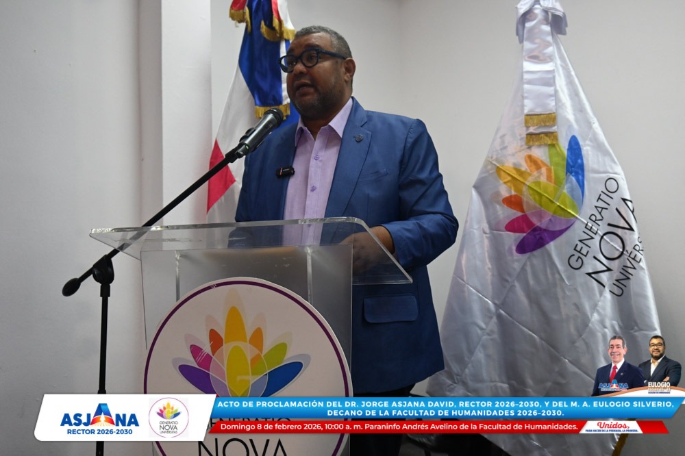 El movimiento académico Generatio Nova Univérsitas realizó el acto de proclamación del Dr. Jorge Asjana David como Rector de la Universidad Autónoma de Santo Domingo (UASD) para el período 2026–2030, así como del M. A. Eulogio Silverio como Decano de la Facultad de Humanidades para el mismo período.