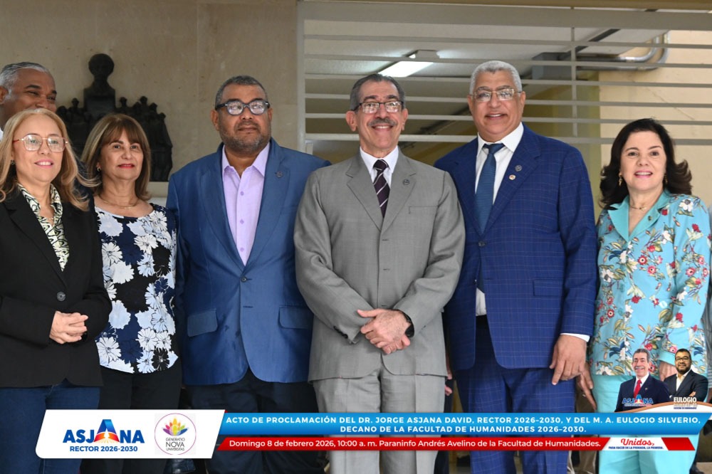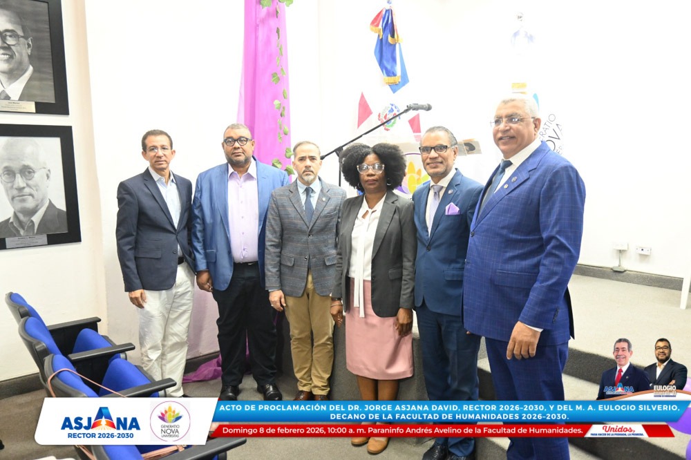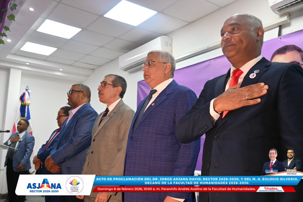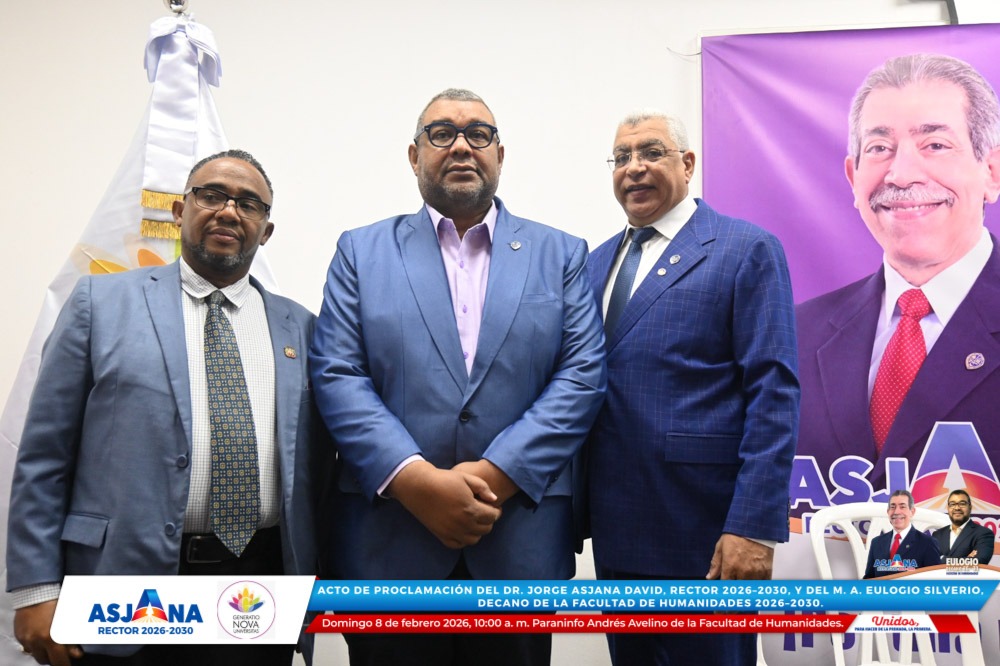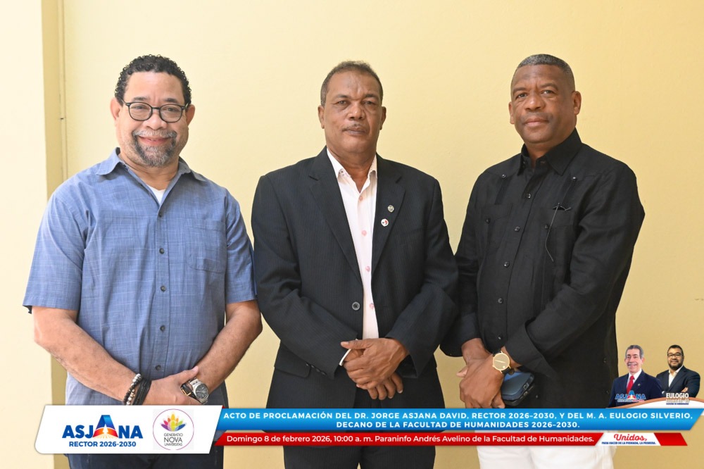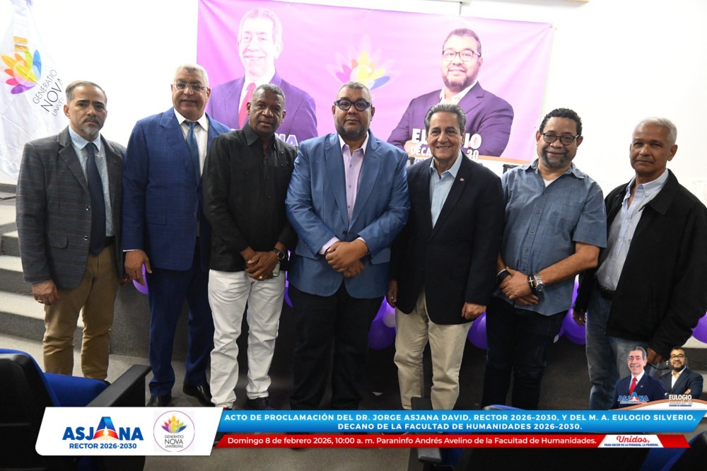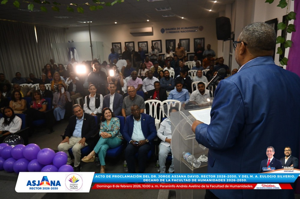 El movimiento académico Generatio Nova Univérsitas realizó el acto de proclamación del Dr. Jorge Asjana David como Rector de la Universidad Autónoma de Santo Domingo (UASD) para el período 2026–2030, así como del M. A. Eulogio Silverio como Decano de la Facultad de Humanidades para el mismo período.