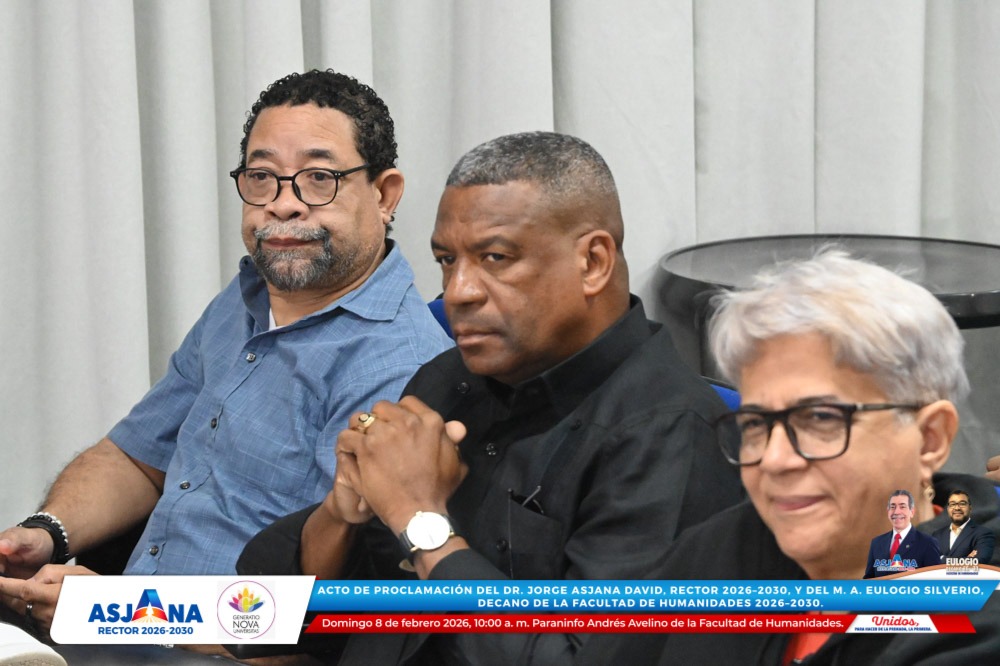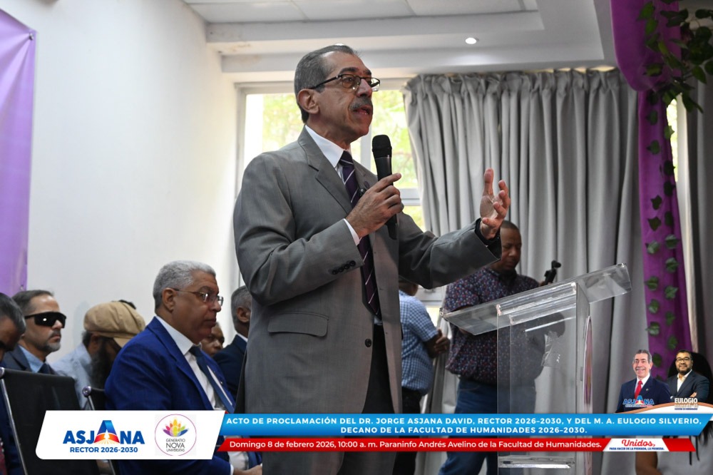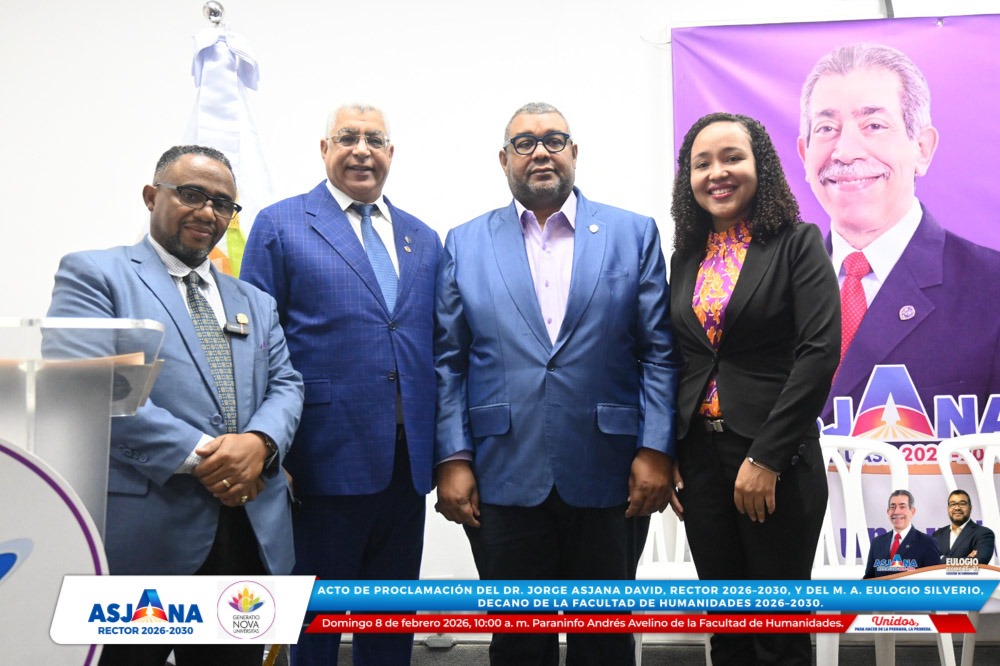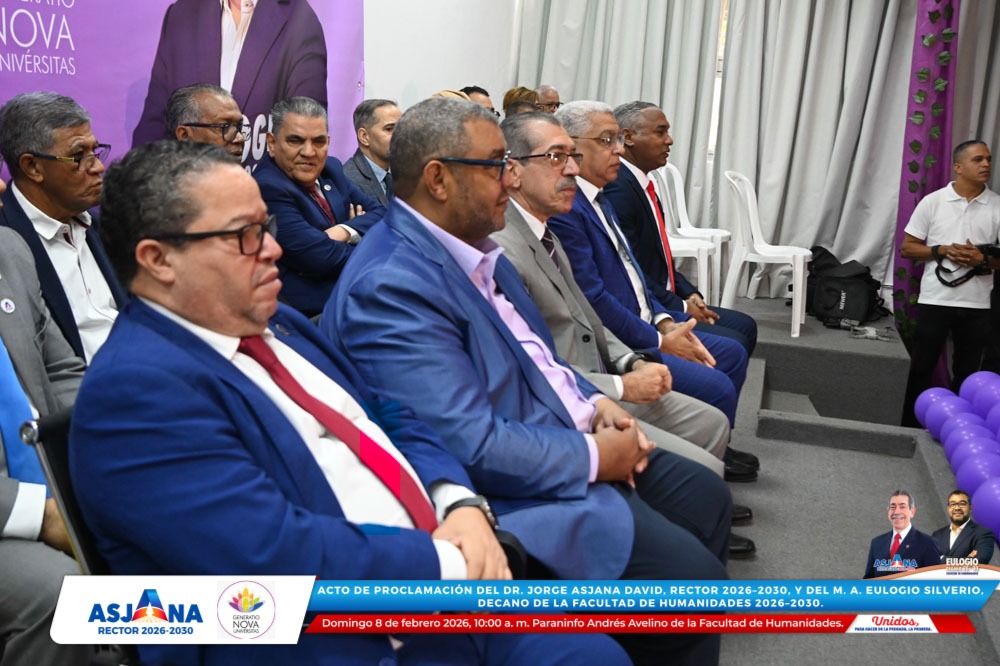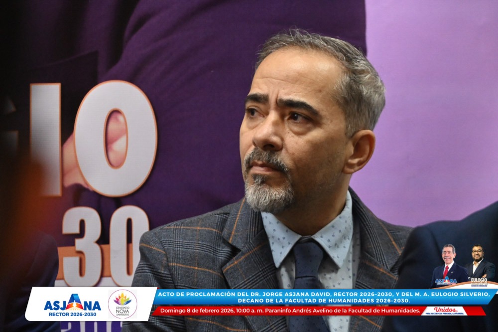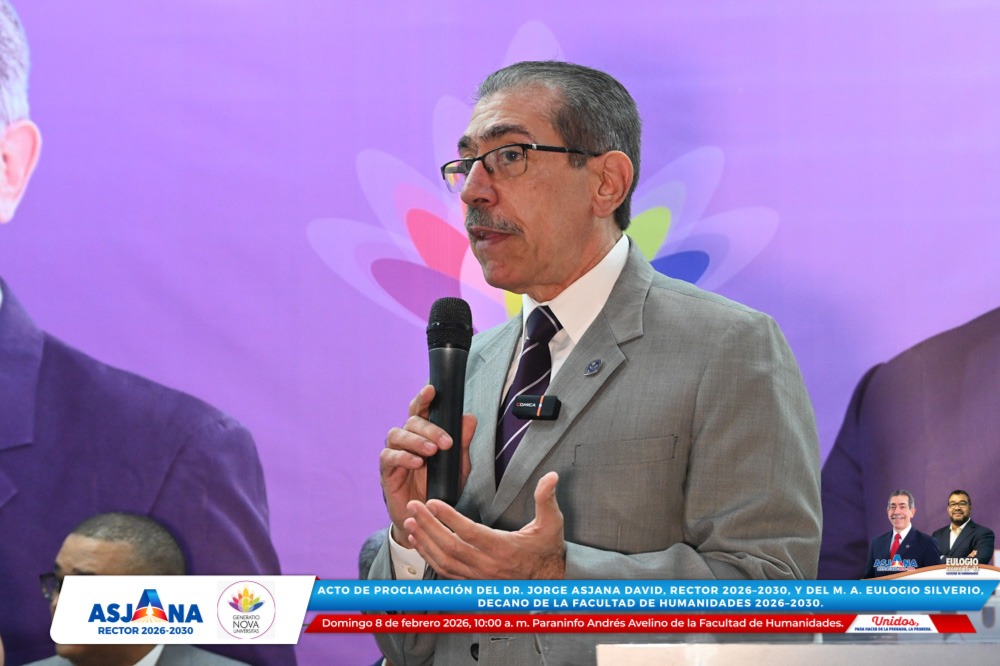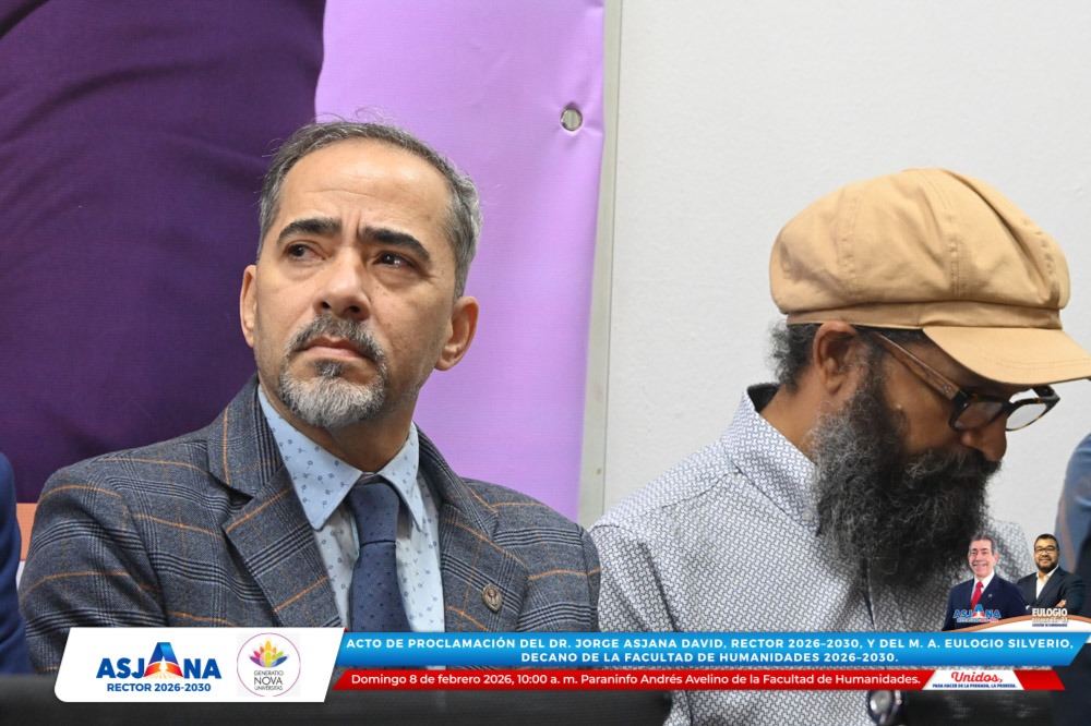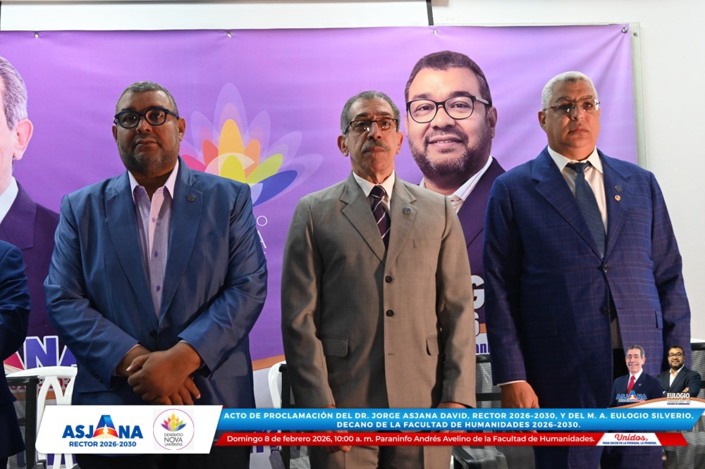 El movimiento académico Generatio Nova Univérsitas realizó el acto de proclamación del Dr. Jorge Asjana David como Rector de la Universidad Autónoma de Santo Domingo (UASD) para el período 2026–2030, así como del M. A. Eulogio Silverio como Decano de la Facultad de Humanidades para el mismo período.